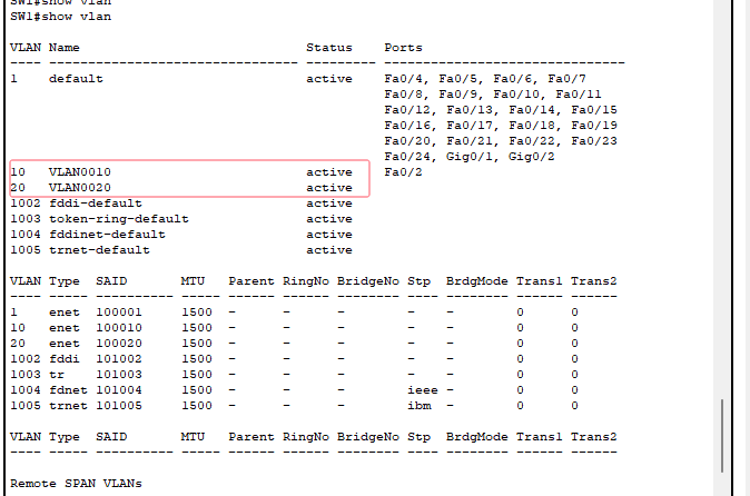回到SW1上查看是否接收到服务端创建的VLAN