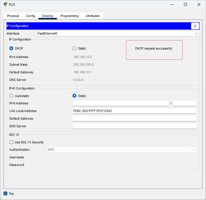 显示DHCP request success ful 表示获取成功